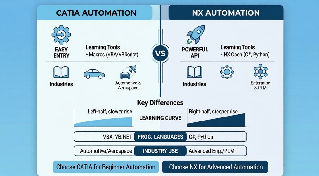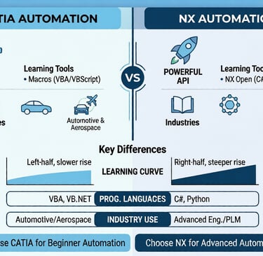 Confused between CATIA and NX for automation? This detailed guide helps you understand the differences, strengths, and career opportunities so you can choose the right path in CAD automation.